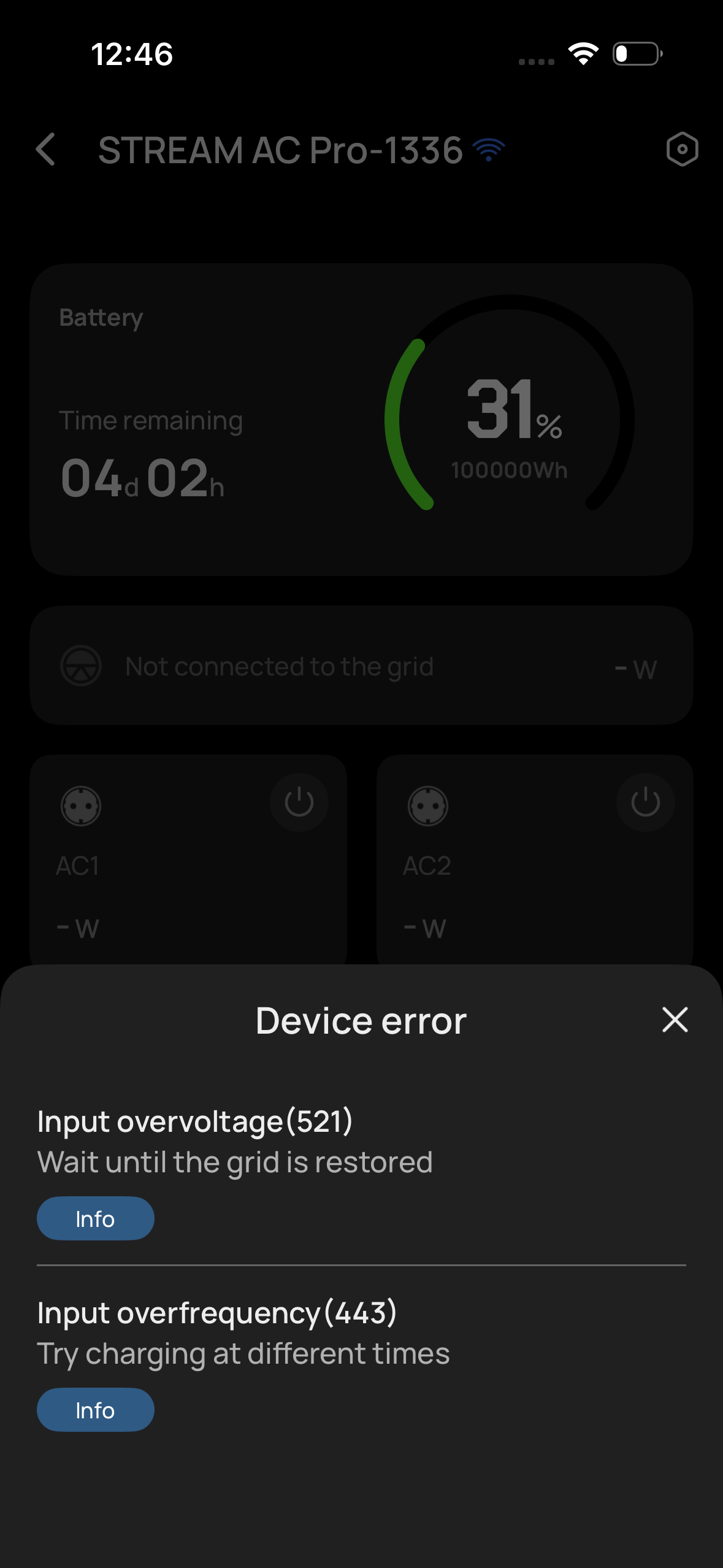 But the STREAM AC Pro was spitting out errors when connected to the grid. Updating the firmware didn't work, and it looks like a botched firmware.