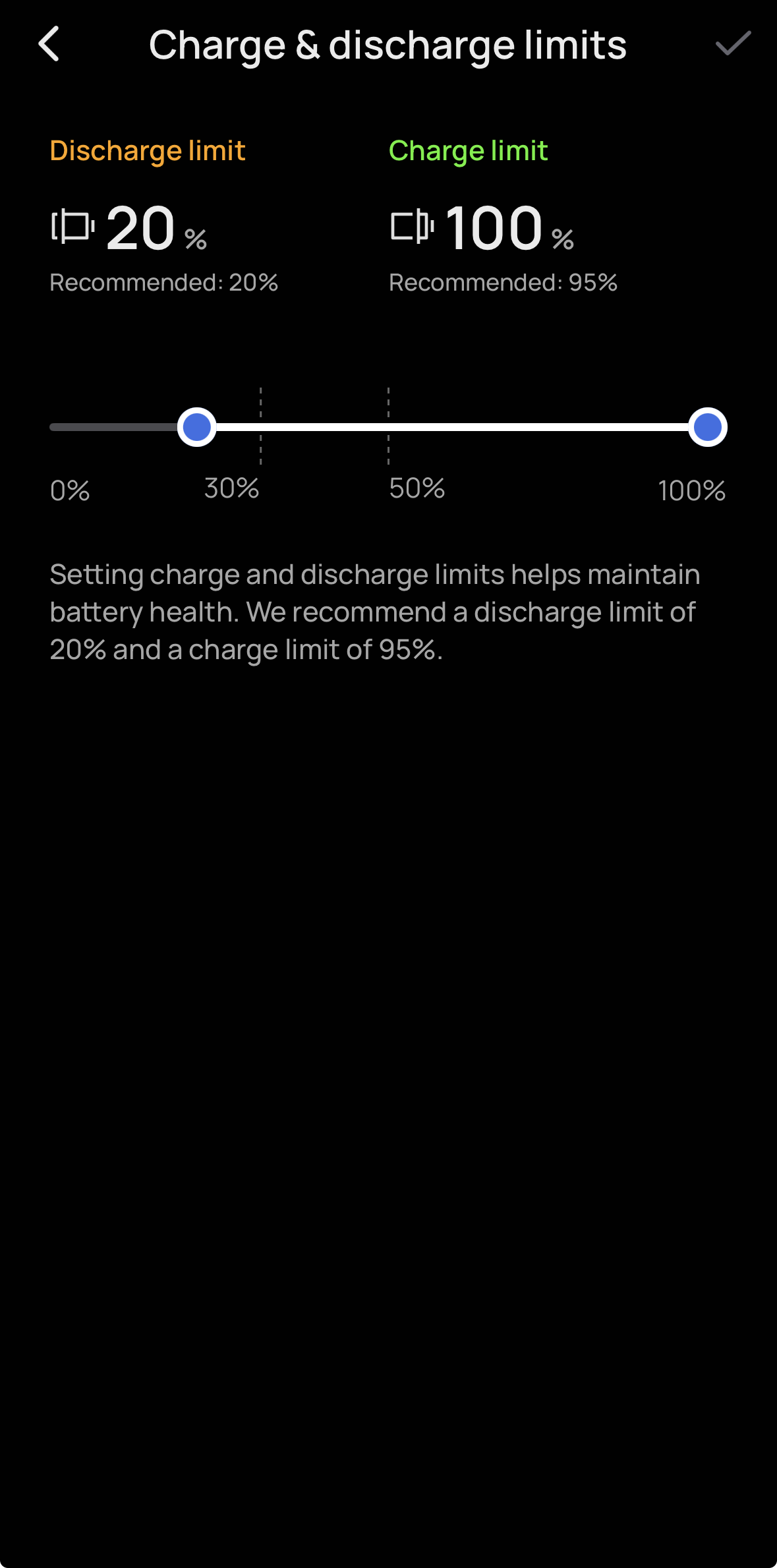 suggestion. According to EcoFlow support: "If you want to maximize solar energy instead of using grid power, we recommend setting the battery charge limit to 100%." |